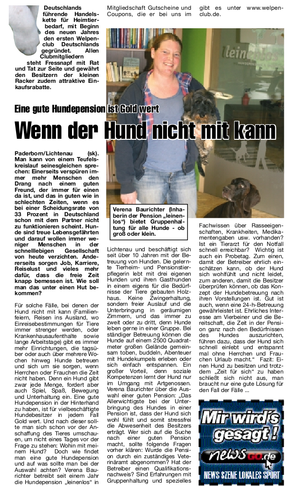 Wenn der Hund nicht mit kann (Bericht aus dem Wochenspiegel, 15. September 2010)